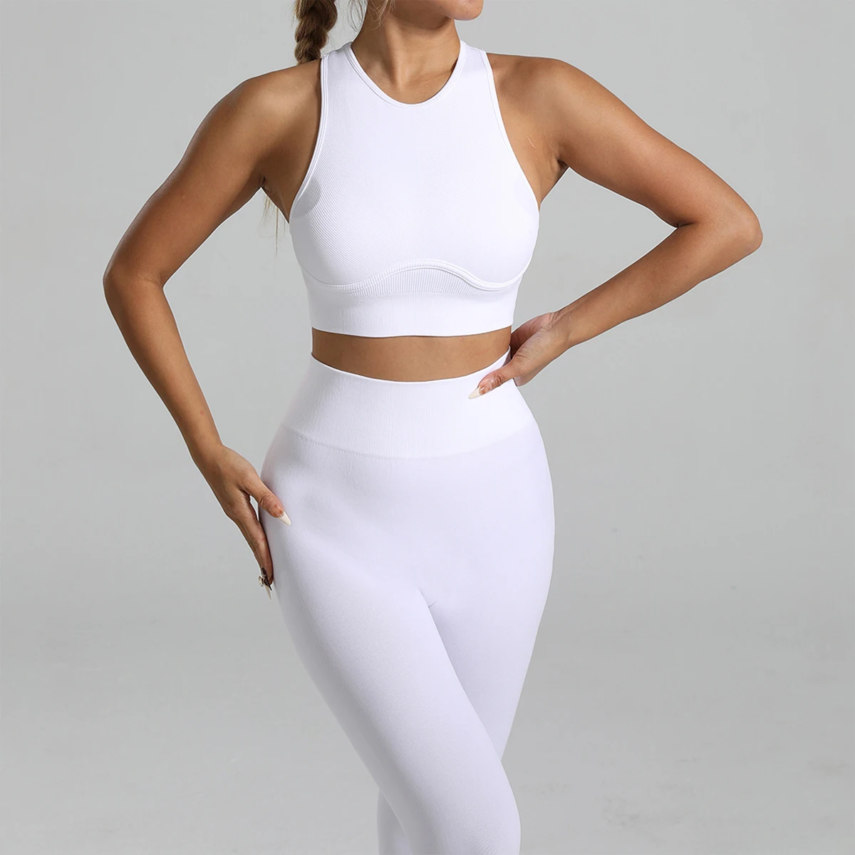 Elevate your practice with this seamless ribbed yoga set, engineered for unrestricted movement and all-day comfort. The high-waisted design provides confident support through every pose, while the ribbed fabric offers a sleek, sculpted silhouette. Crafted from premium, breathable materials, it transitions effortlessly from studio to street. Plus, enjoy free shipping on your order—making premium activewear more accessible than ever.